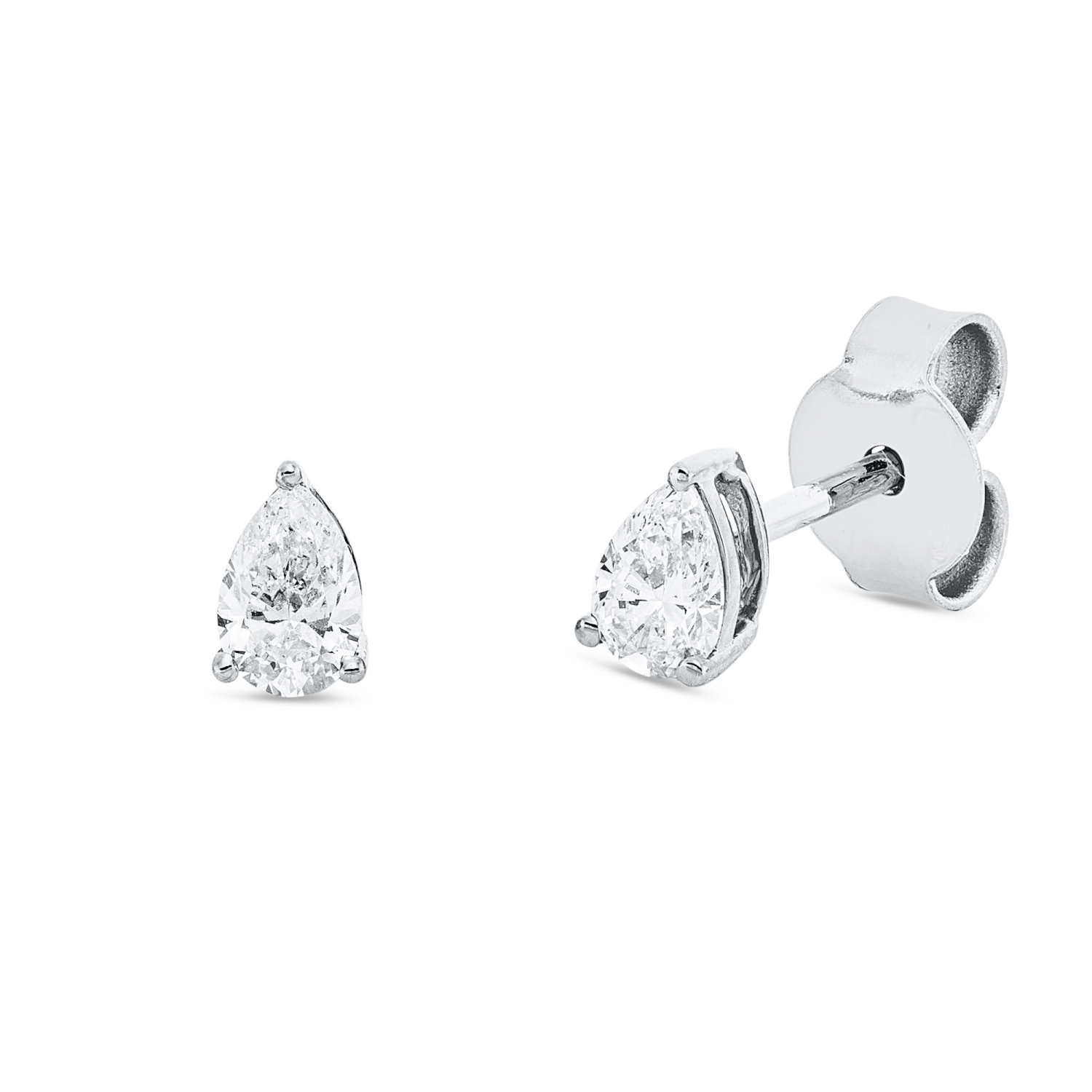 Solitaire Ohrstecker aus 750 Weißgold 2 Diamanten Tropfen-Schliff 0,43ct TW-SI