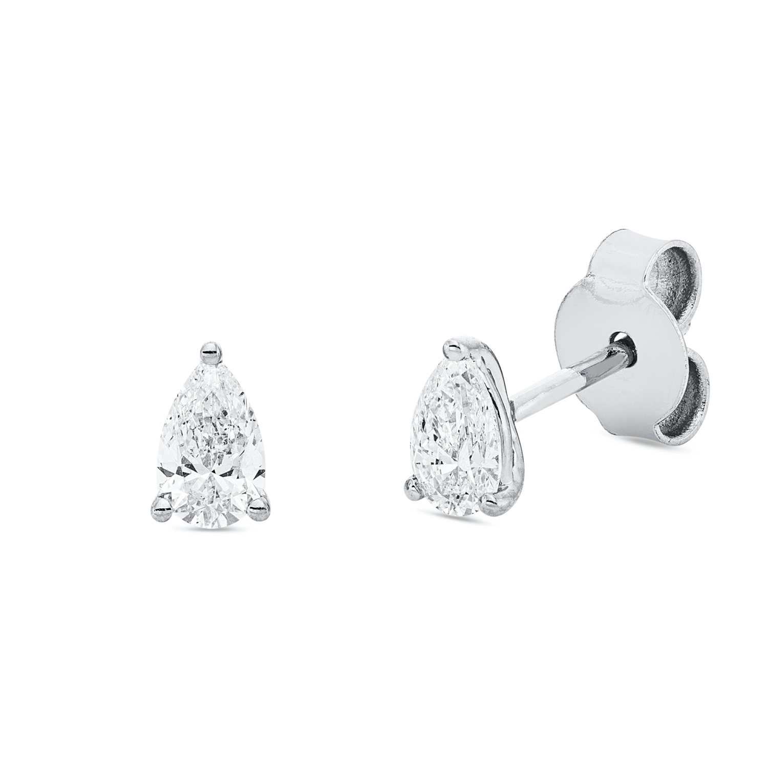 Solitaire Ohrstecker aus 750 Weißgold 2 Diamanten Tropfen-Schliff 0,48ct TW-SI