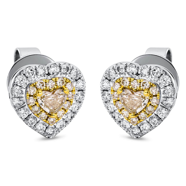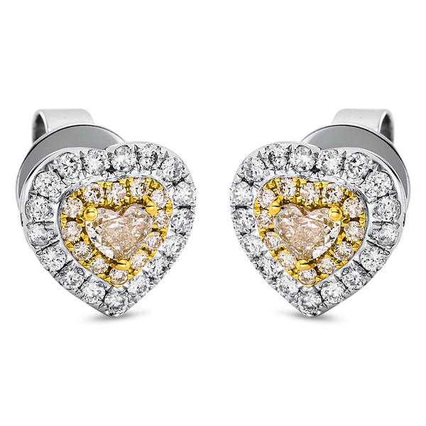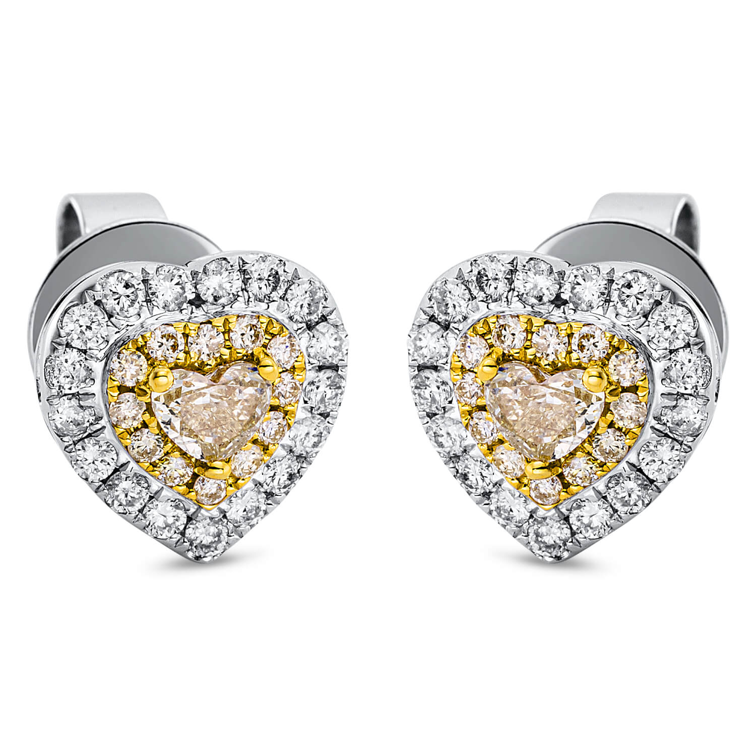 Solitaire Ohrstecker Herz aus 750 Gold gelb/weiß 60 Diamanten 1,14ct