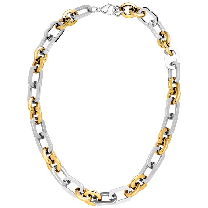 Collier / Halskette aus Edelstahl mit gelbgoldfarbener PVD-Beschichtung kombiniert, mit Karabinerverschluss