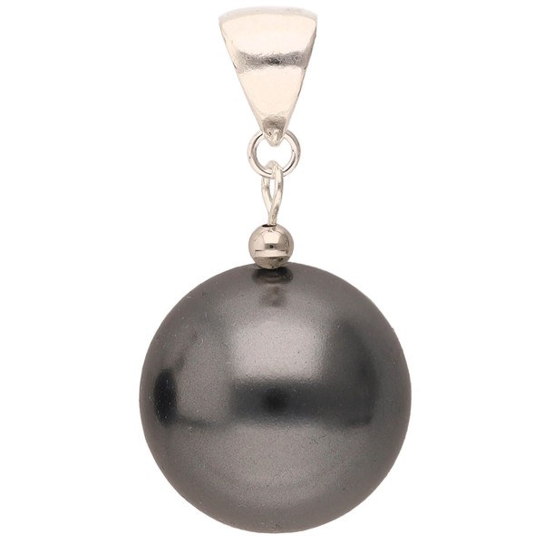 Anhänger aus Muschelkernperle & 925 Silber, Ø16mm, dunkelgrau