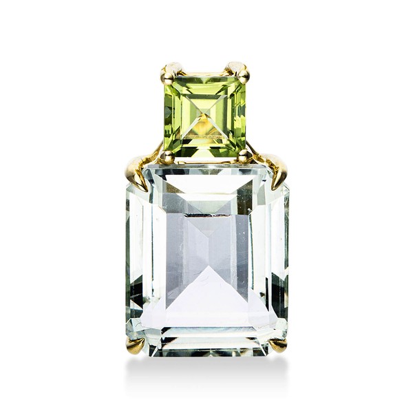 Anhänger aus 750 Gold Gelbgold 2 Amethyste 6,1ct grün 17,9x10mm