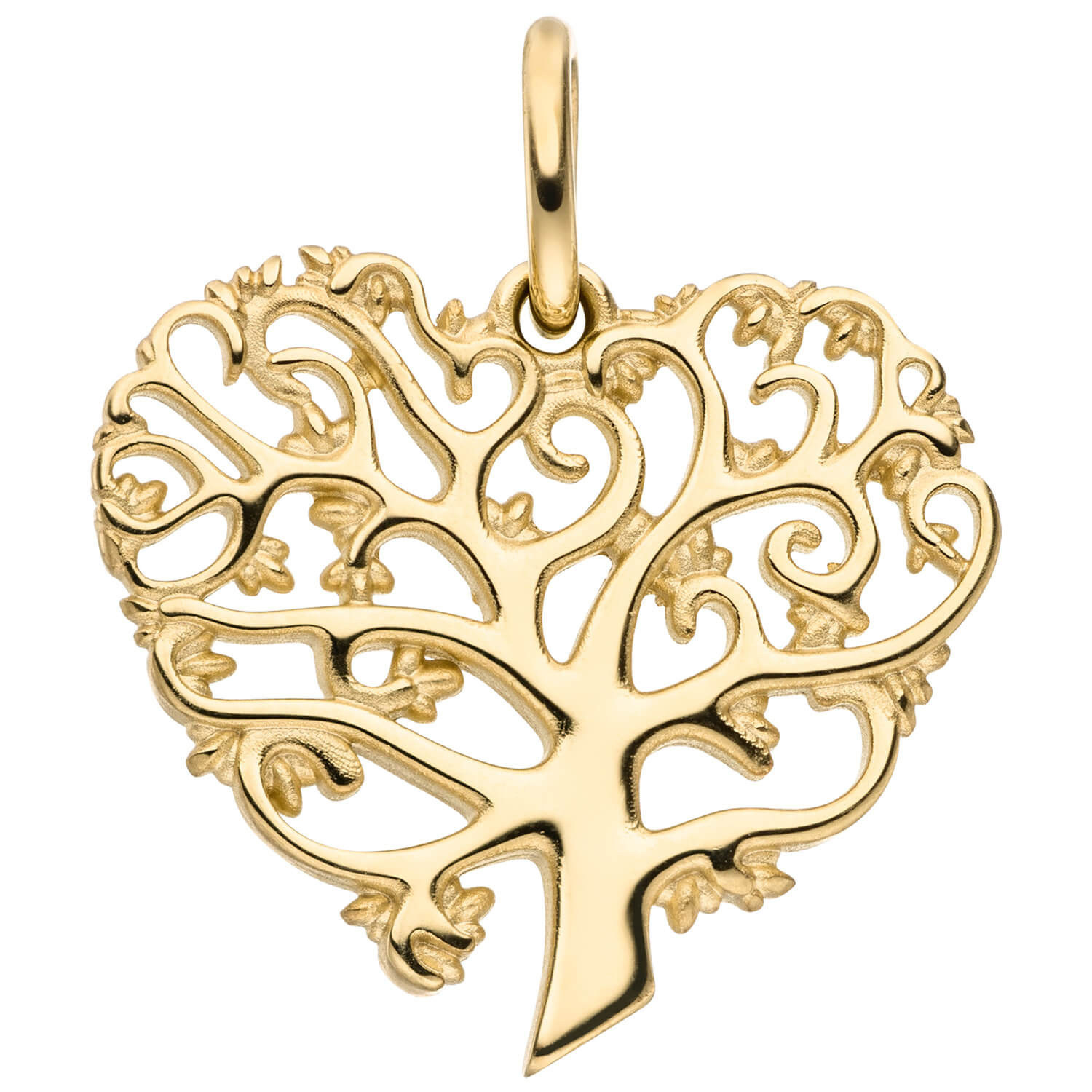 Anhänger 'Lebensbaum/Herz' aus 9 Karat (375) Gelbgold, teilmattiert