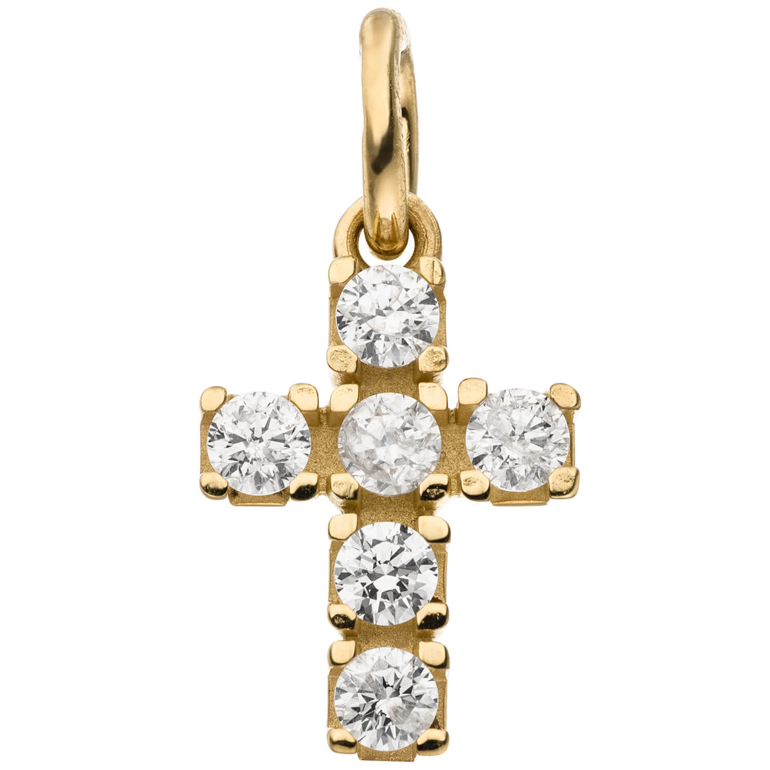 Anhänger 'Kreuz' aus 9 Karat (375) Gelbgold mit 6 Zirkonia