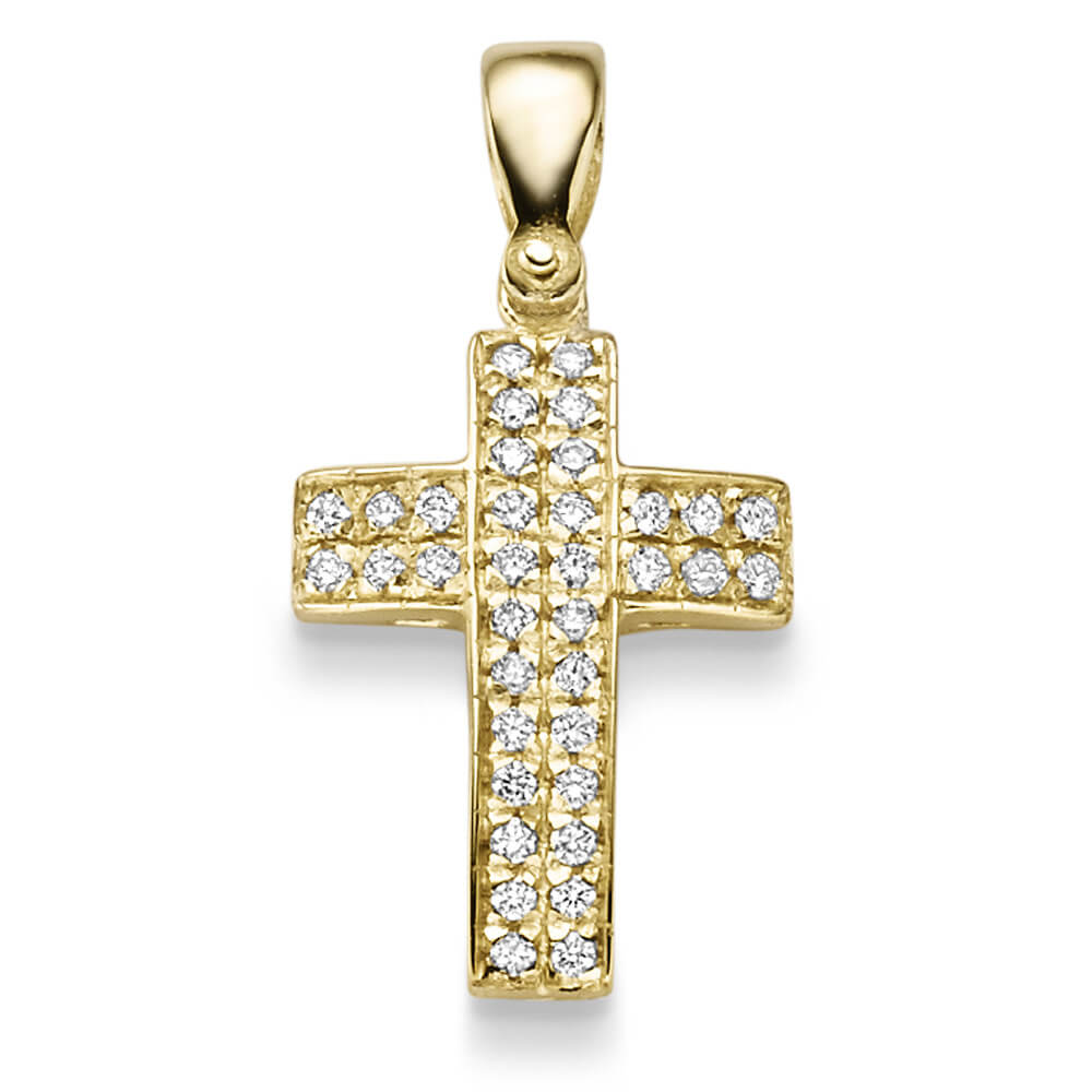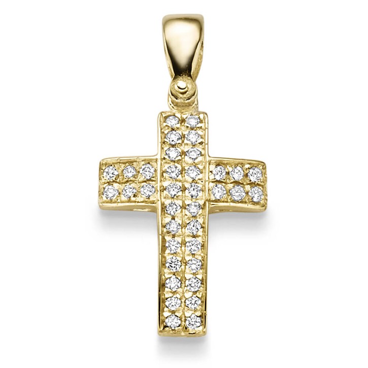Anhänger Kreuz 29.2x14.5mm 585 Gelbgold 36 Brillanten 0.34ct