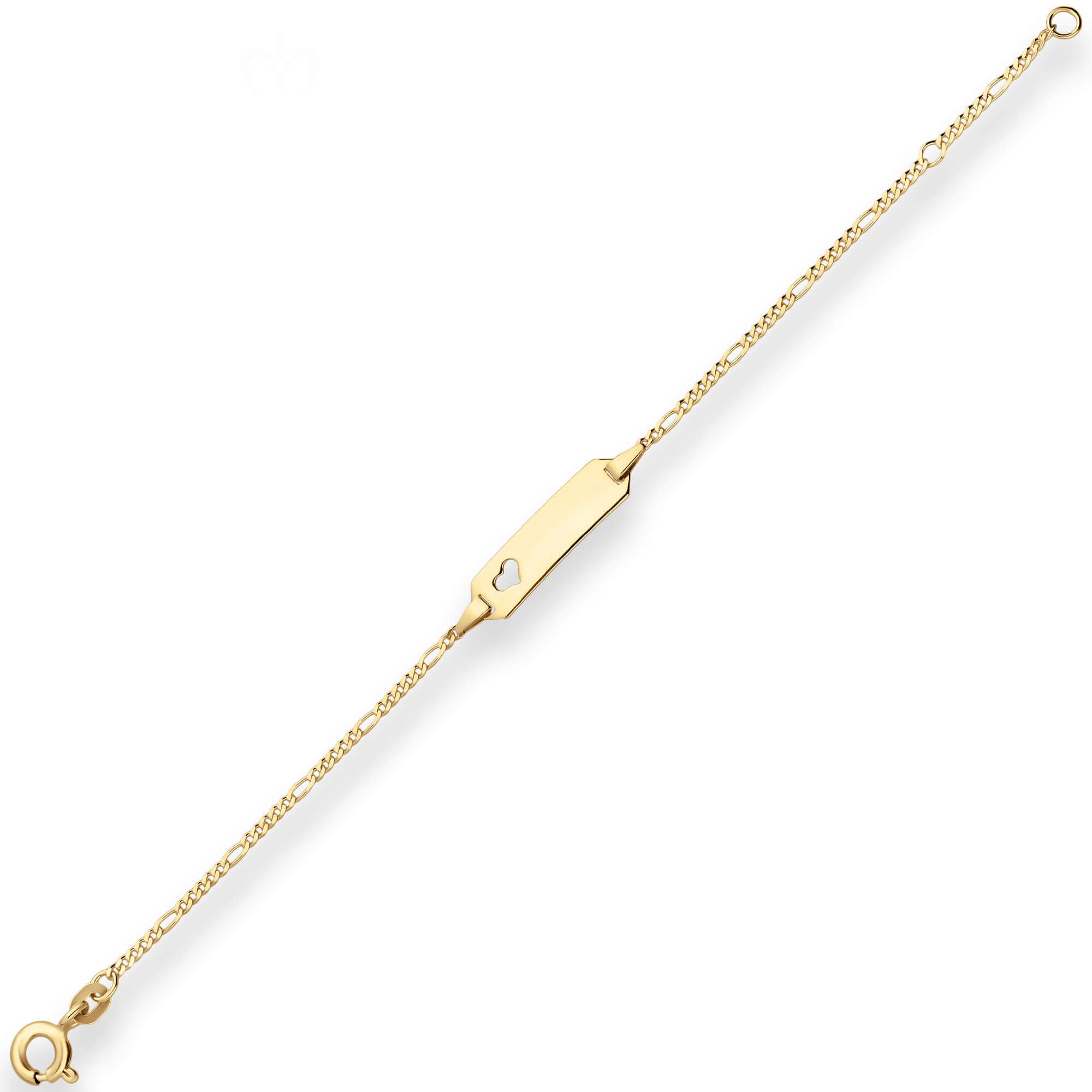 1,5mm Id-Armband Figarokette diamantiert Herz 585 Gelbgold 16cm