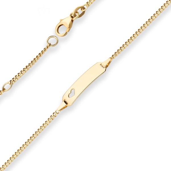 1,7mm Id-Armband Panzerkette Schildband, Herz aus 750 Gold Gelbgold 18cm