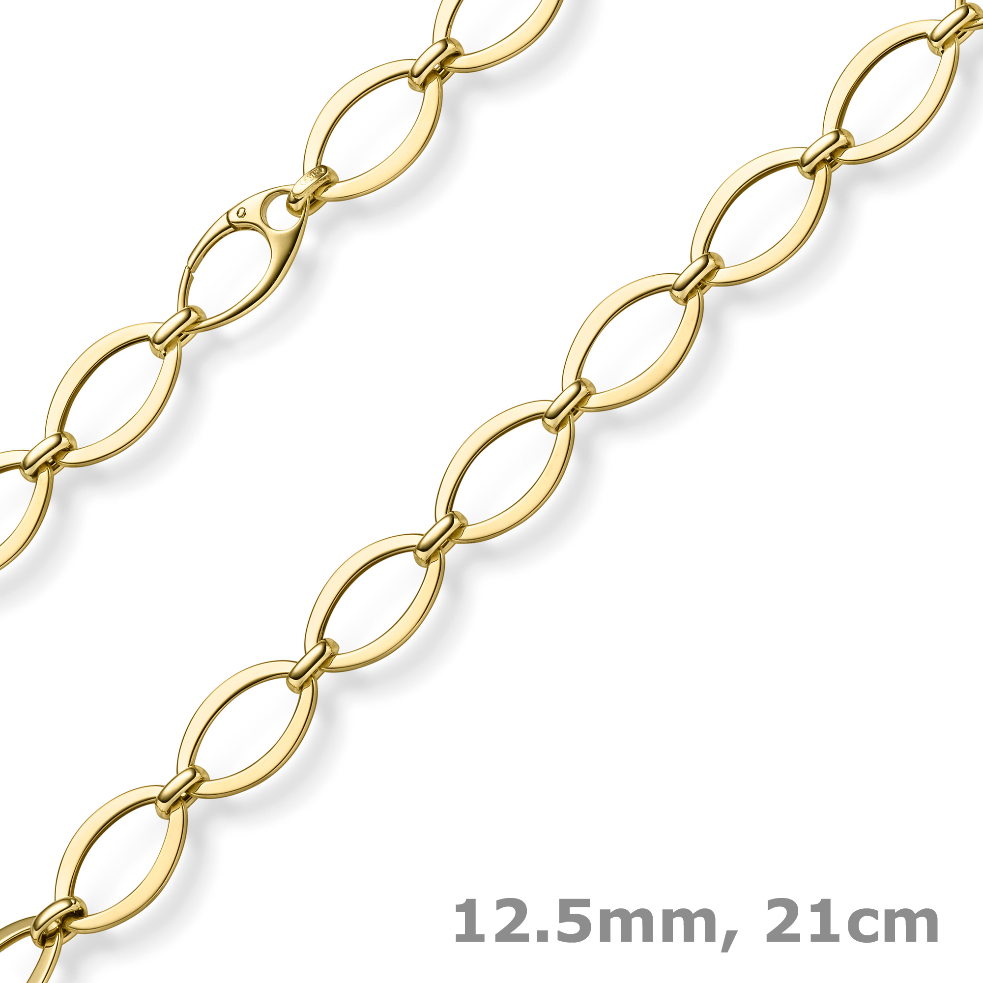 12,5mm Armband mit ovalen Kettengliedern 585 Gelbgold 21cm