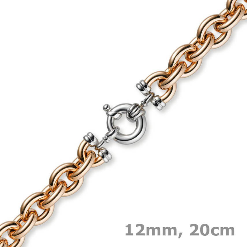 12mm Rundanker Armband Armkette aus 585 Gold Rotgold & Weißgold, 20cm