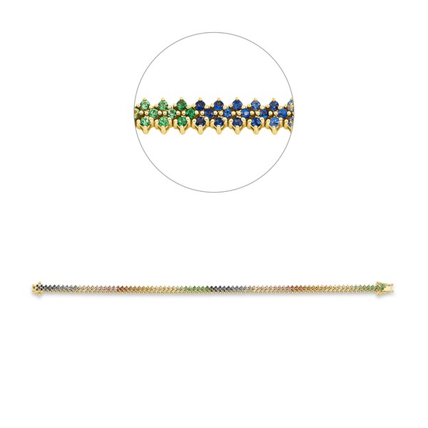 Armband aus 750 Gelbgold 246 Saphire 2,64ct mehrfarbig B:3,8mm L:17,5cm