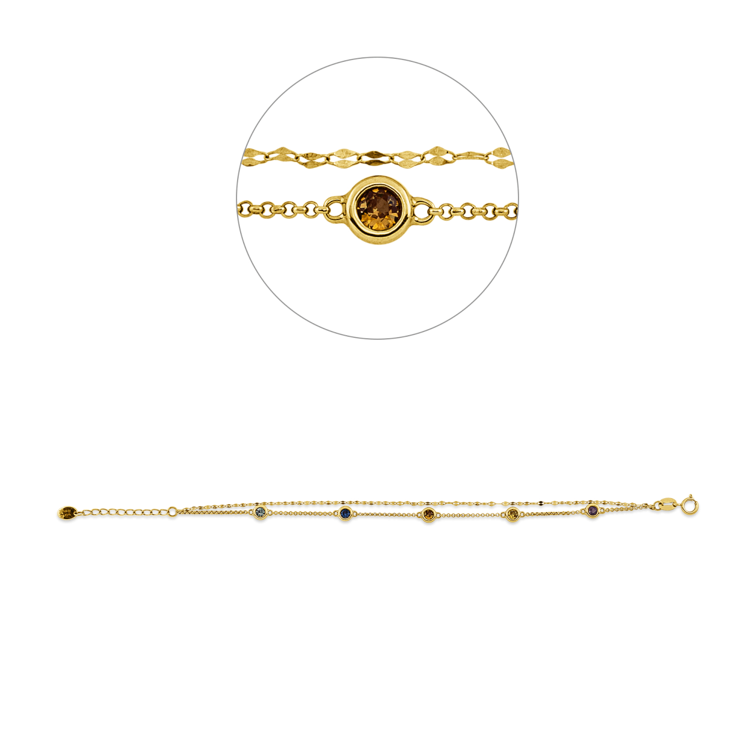 Armband aus 750 Gold Gelbgold 5 Saphire 0,58ct mehrfarbig B:4,4mm L:17,4cm