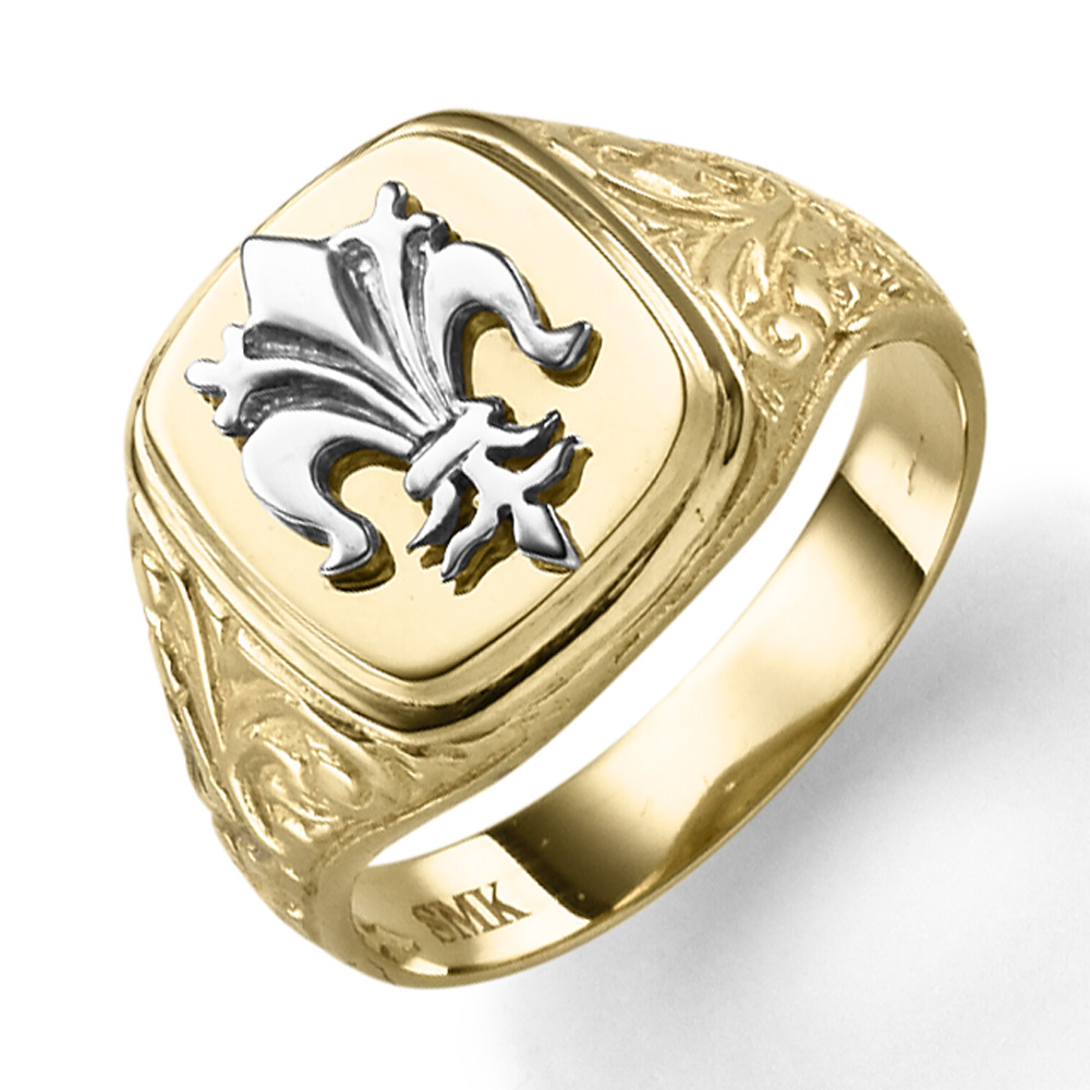 Siegelring Herrenring heraldische Lilie 585 Gold gelb/weiß