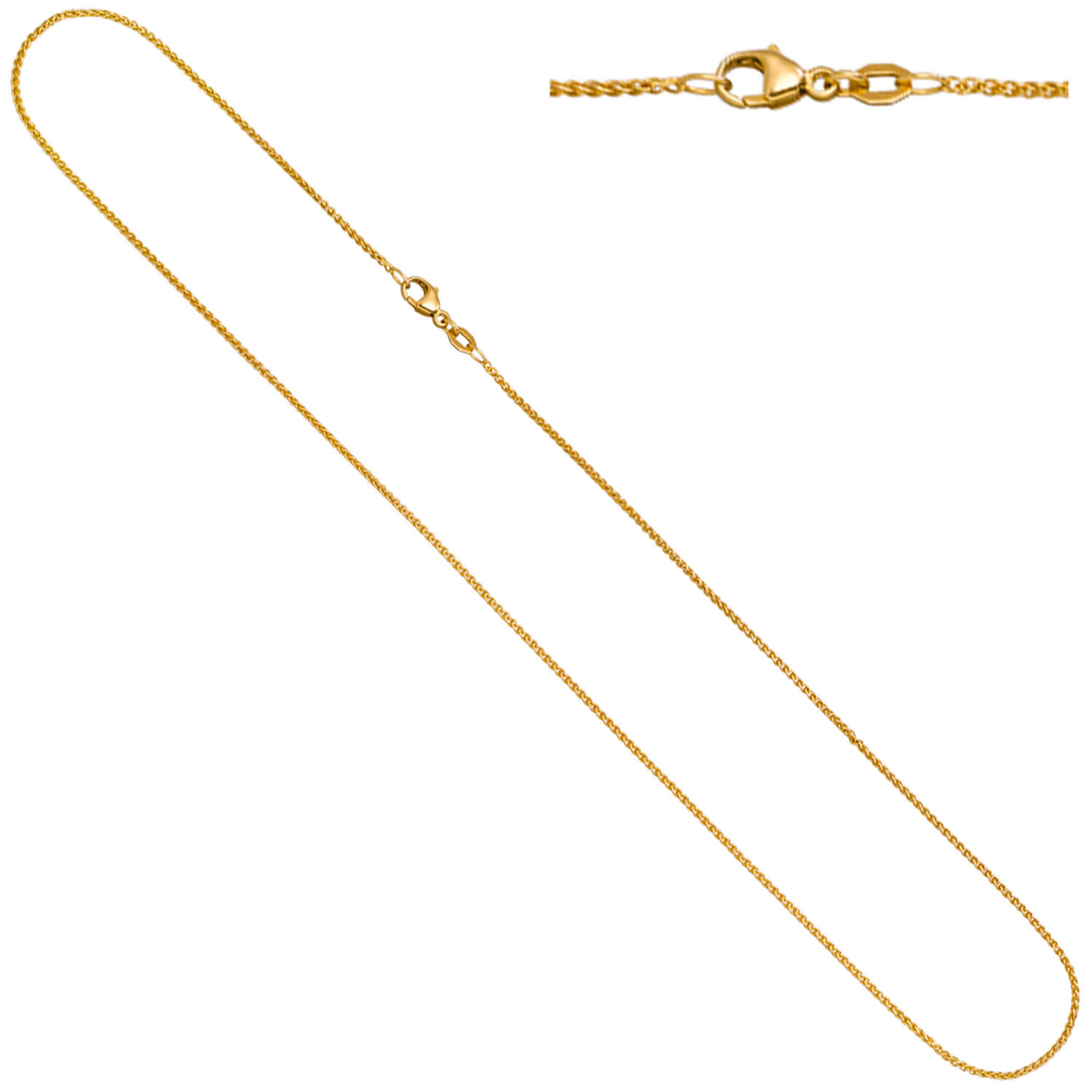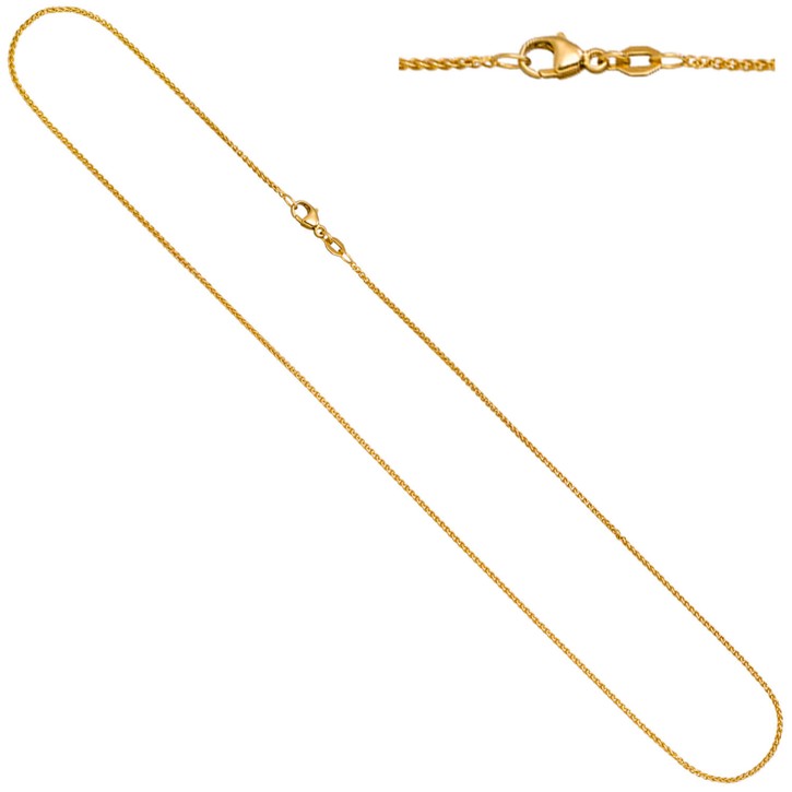 1,3mm Zopfkette Halskette Collier aus 750 Gold Gelbgold 45cm
