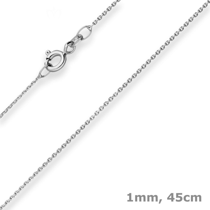 1mm Ankerkette diamantiert aus 375 Weißgold 45cm