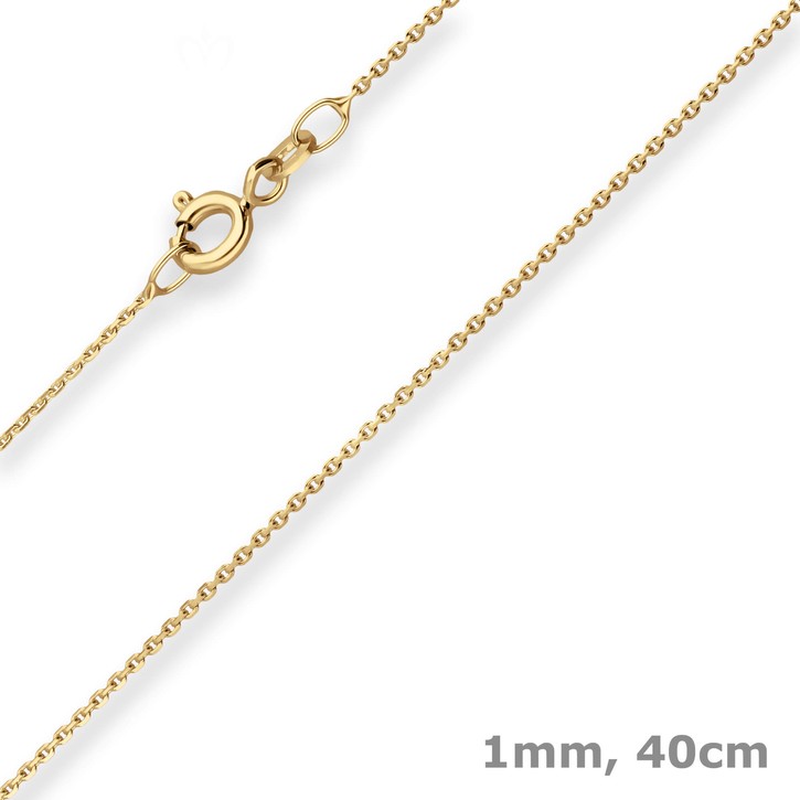 1mm Ankerkette diamantiert aus 585 Gelbgold 40cm