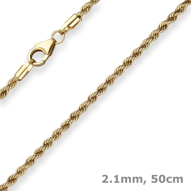 2,1mm Kordelkette Goldkette Collier Halskette aus 585 Gold Gelbgold 50cm