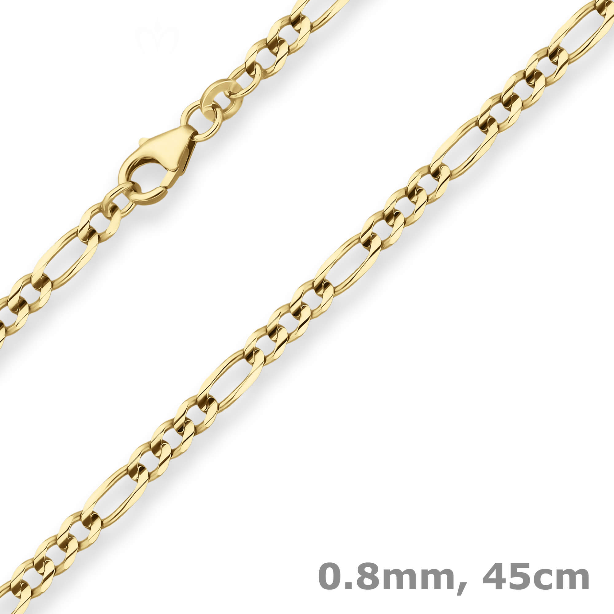 3,4mm Figarokette Goldkette Collier Halskette aus 375 Gold Gelbgold 45cm