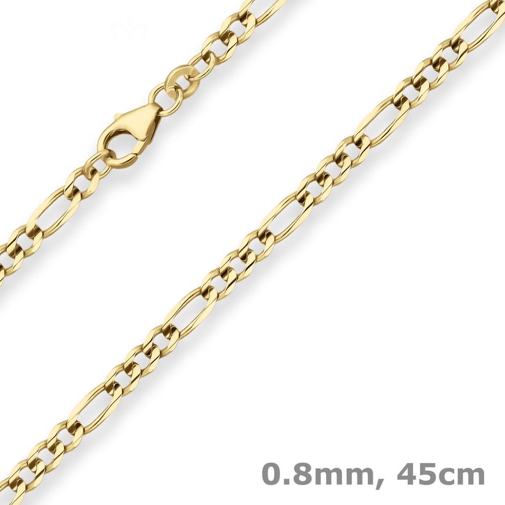 3,4mm Figarokette aus 375 Gelbgold 45cm