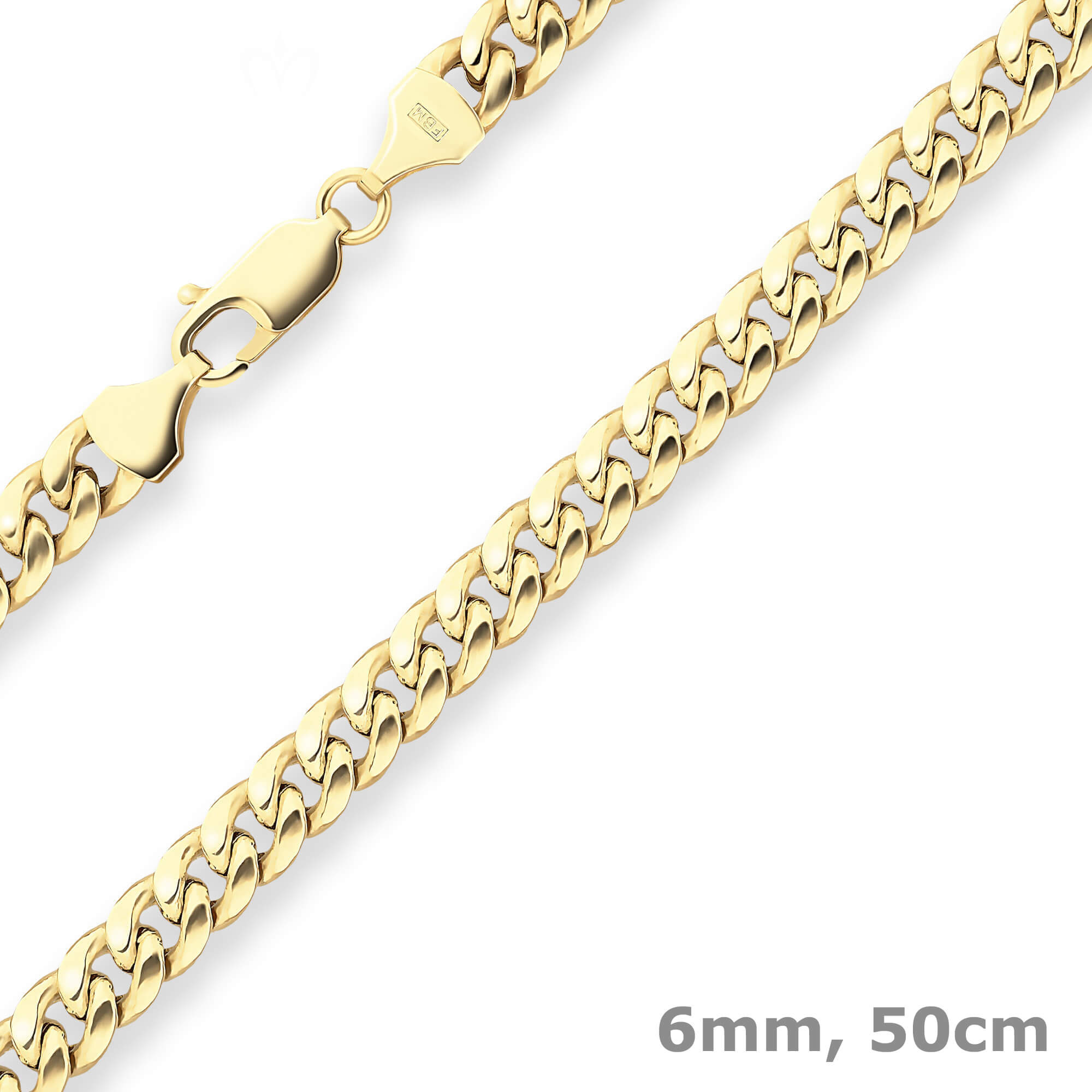 6mm Panzerkette oval diamantiert Collier Halskette aus 585 Gold Gelbgold 50cm