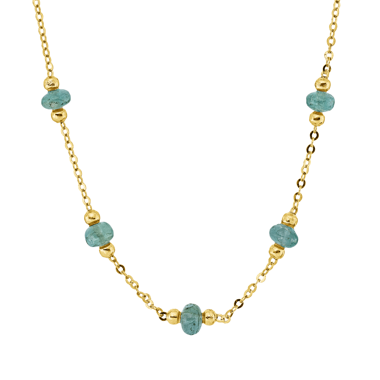 Collier aus 750 Gold Gelbgold 14 Smaragde 1,96ct grün L:46cm