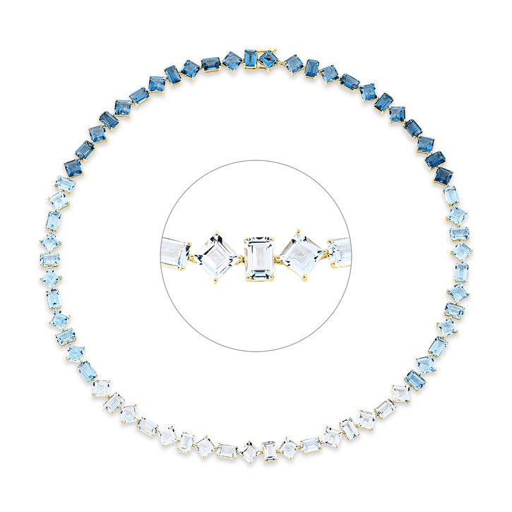 Collier aus 750 Gold Gelbgold 63 Topase 47,2ct London Blue L:40,8cm 4er-Krappe