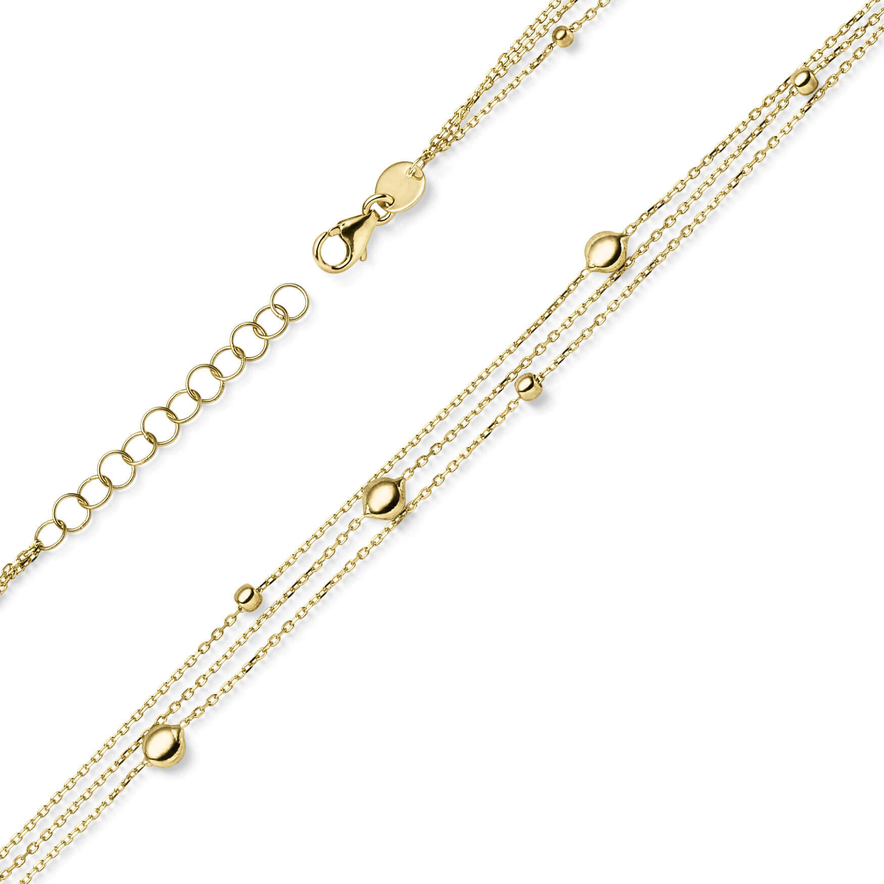 Collier Halskette Halsschmuck 3-reihig mit Elementen 585 Gold Gelbgold 42-45cm