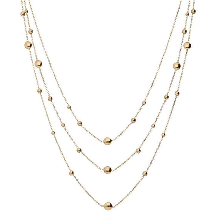 Halskette 3-reihig mit Elementen 585 Gelbgold hohl 45cm