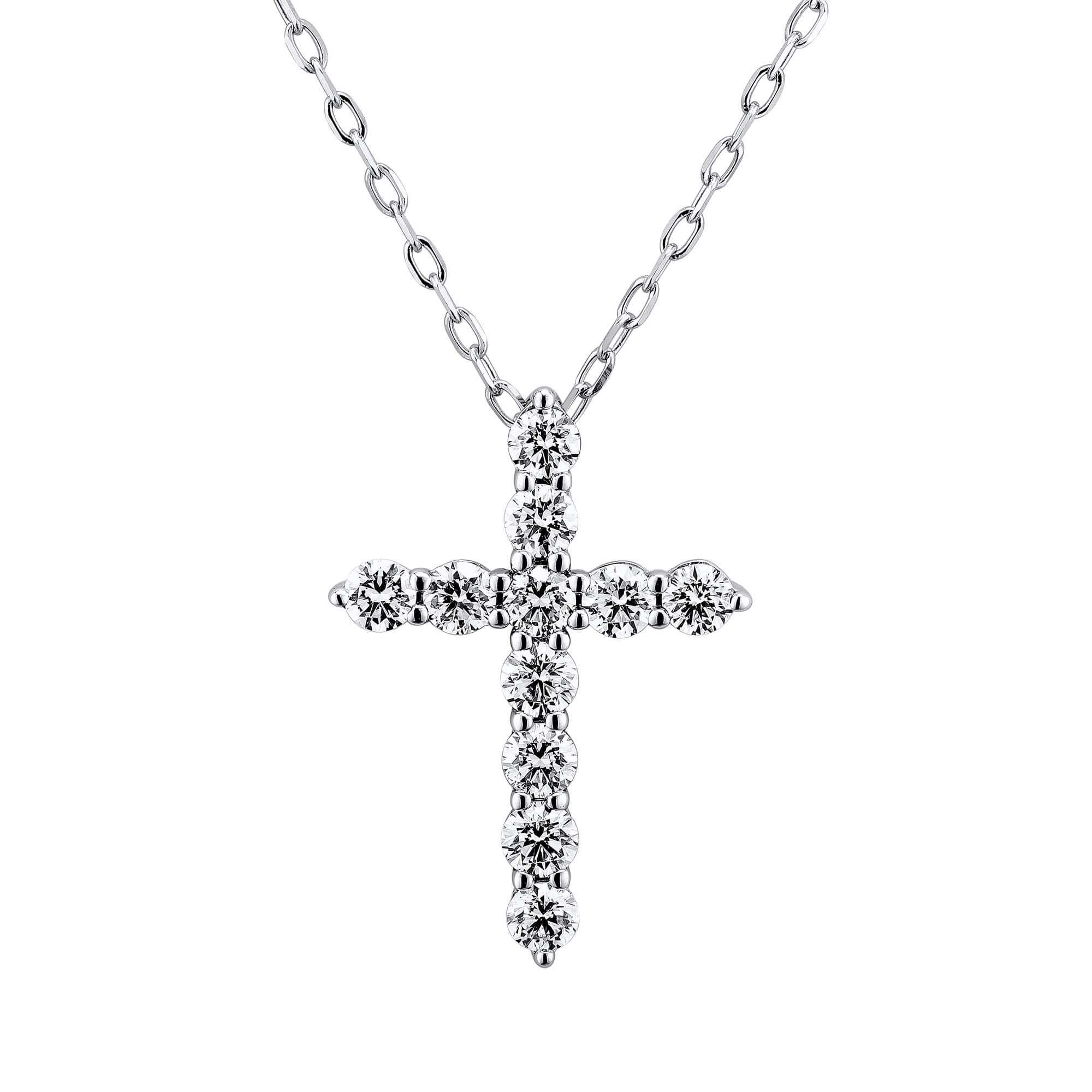 Collier mit Kreuz 11 Diamanen 0.73ct 750 Weißgold 45cm