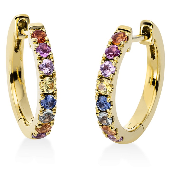 Creolen aus 750 Gold Gelbgold 16 Saphire 0,73ct mehrfarbig 15,7x2,1mm