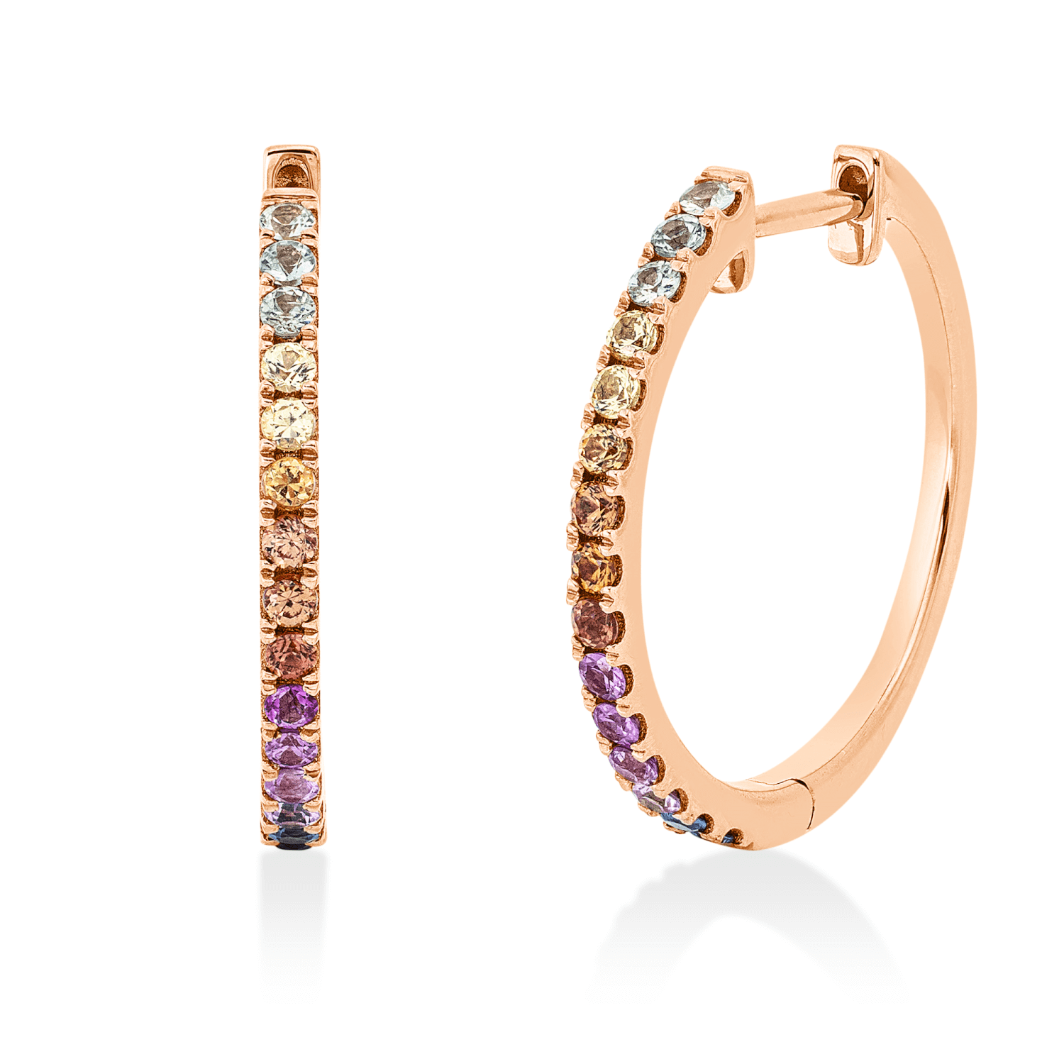 Creolen aus 750 Gold Rotgold 30 Saphire 0,58ct mehrfarbig 19,8x1,7mm