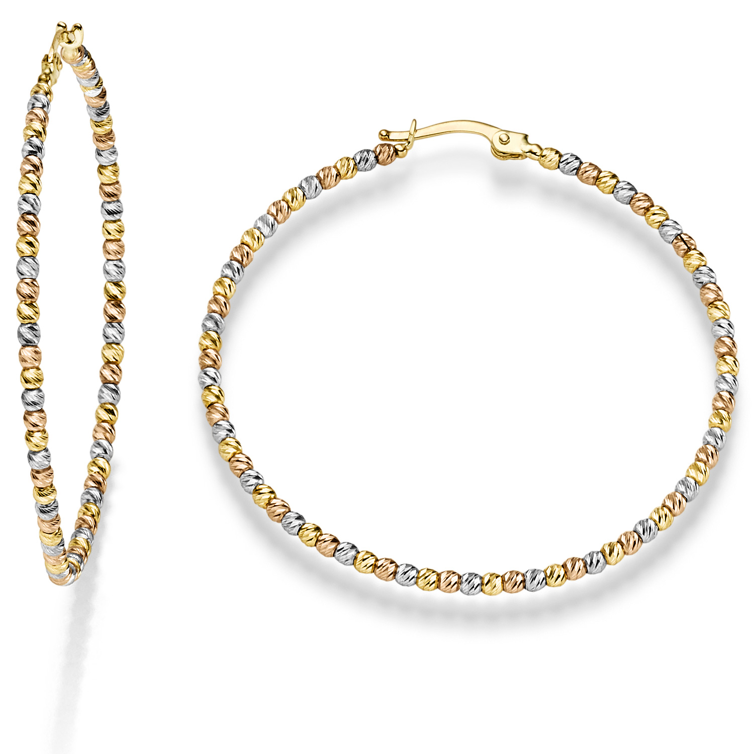 Ohrringe Creolen 45x2mm Kügelchen diamantiert 585 Gold gelb/weiß/rot tricolor