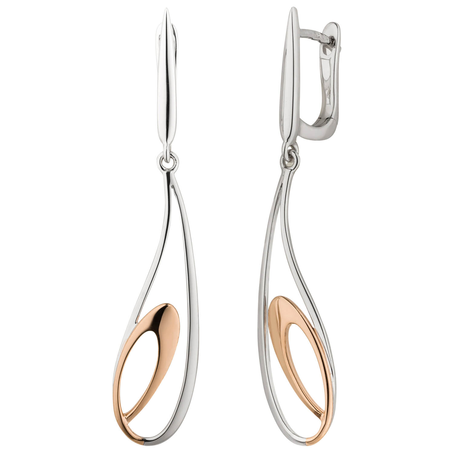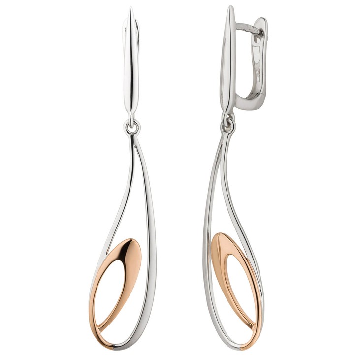 Ohrhänger 38,5x7,9mm aus 585 Gold Weißgold teilrotvergoldet bicolor Ohrringe