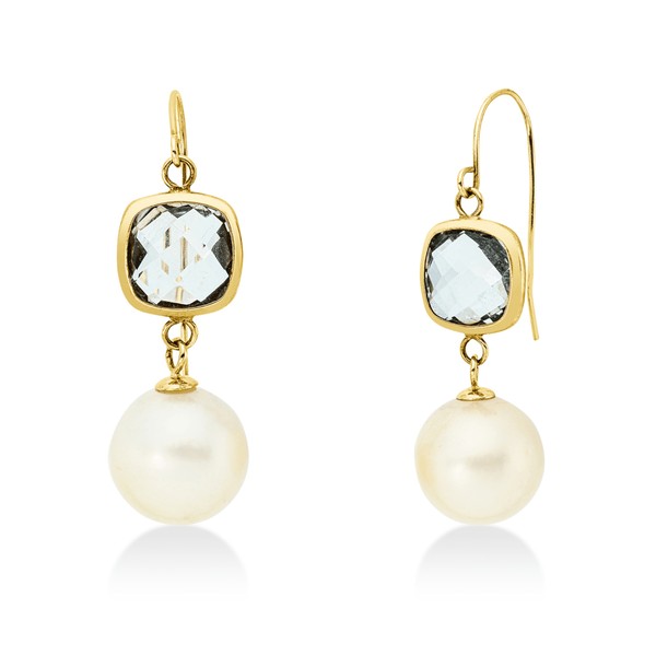 Ohrhänger aus 585 Gelbgold 2 Südsee-Perlen 2 Amethyste