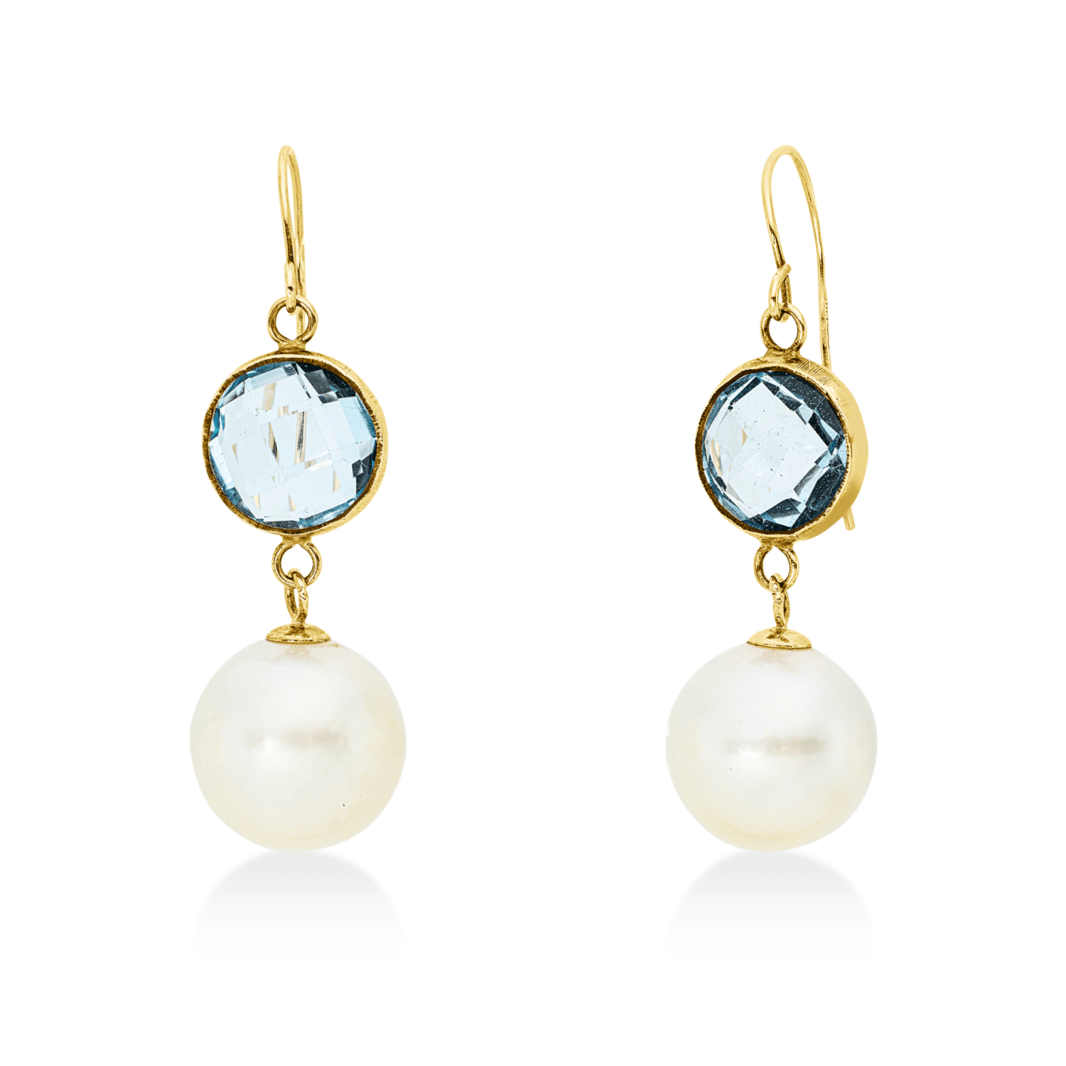 Ohrhänger aus 585 Gelbgold 2 Südsee-Perlen 2 Topase
