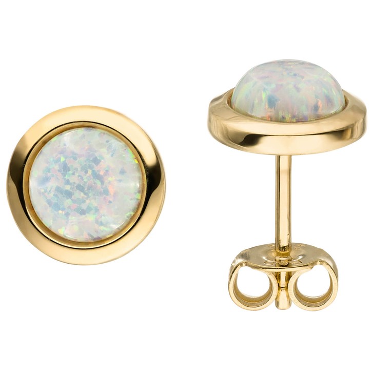Ohrstecker Ø 8,5mm 375 Gold Gelbgold mit Opal Ohrringe Ohrschmuck Goldohrringe