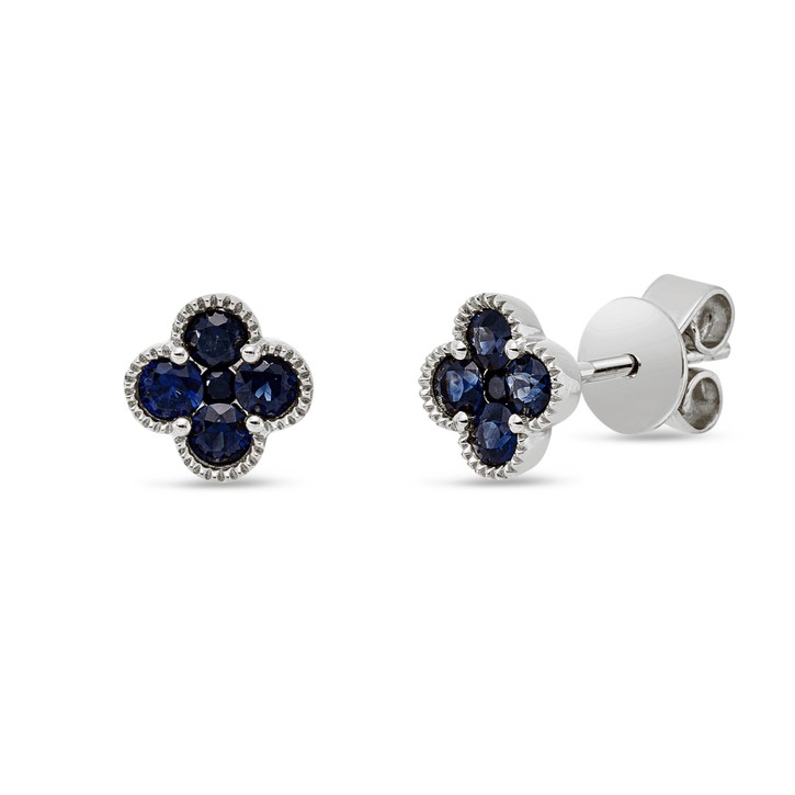 Ohrstecker aus 750 Gold Weißgold 10 Saphire 0,49ct blau 6,4x6,4mm