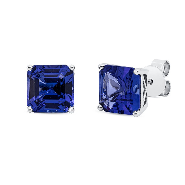 Ohrstecker aus 750 Gold Weißgold 2 Tansanite 6,84ct blau 8,7x8,7mm 4er-Krappe