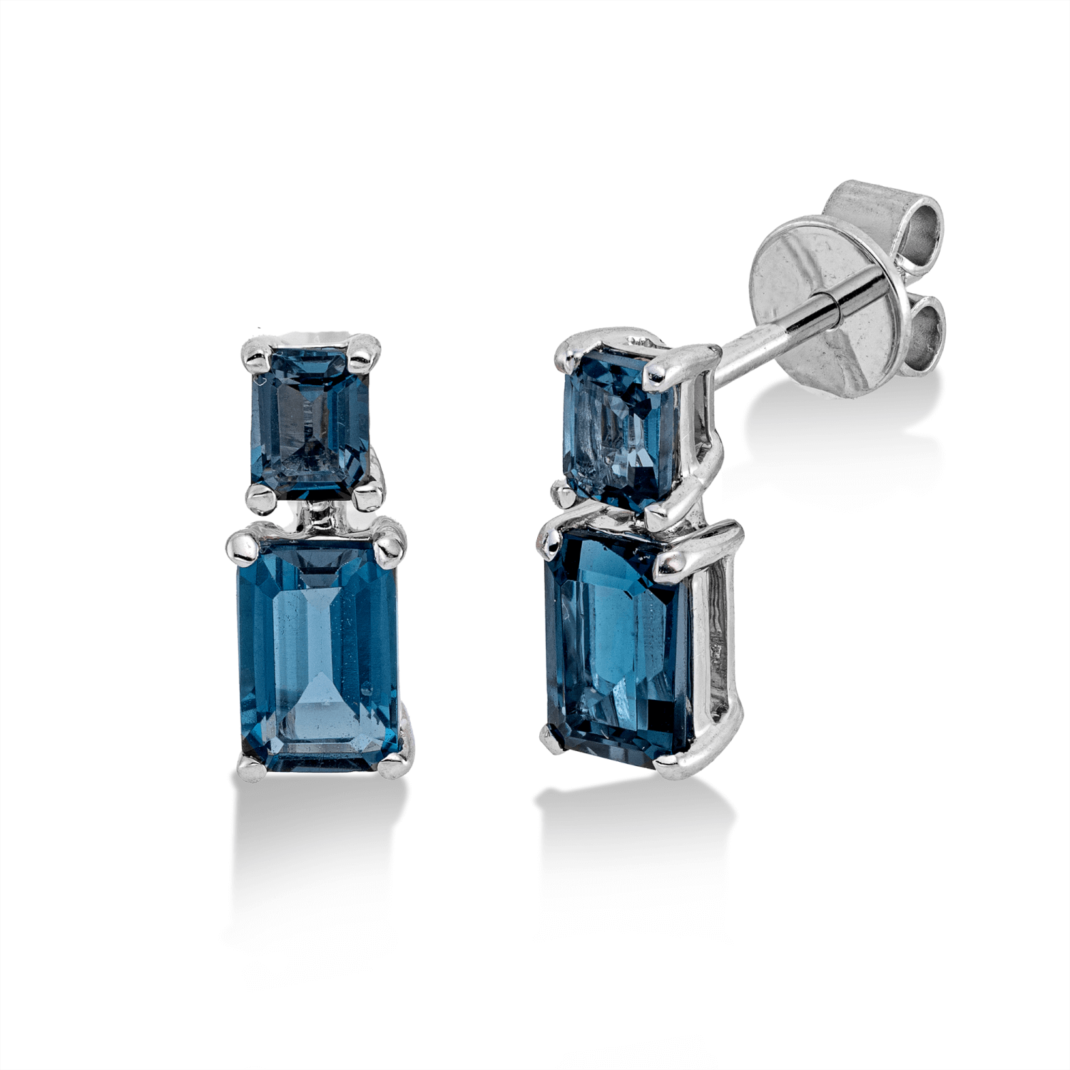 Ohrstecker aus 750 Gold Weißgold 4 Topase 1,77ct London Blue 11,4x4,7mm 4er-Krappe