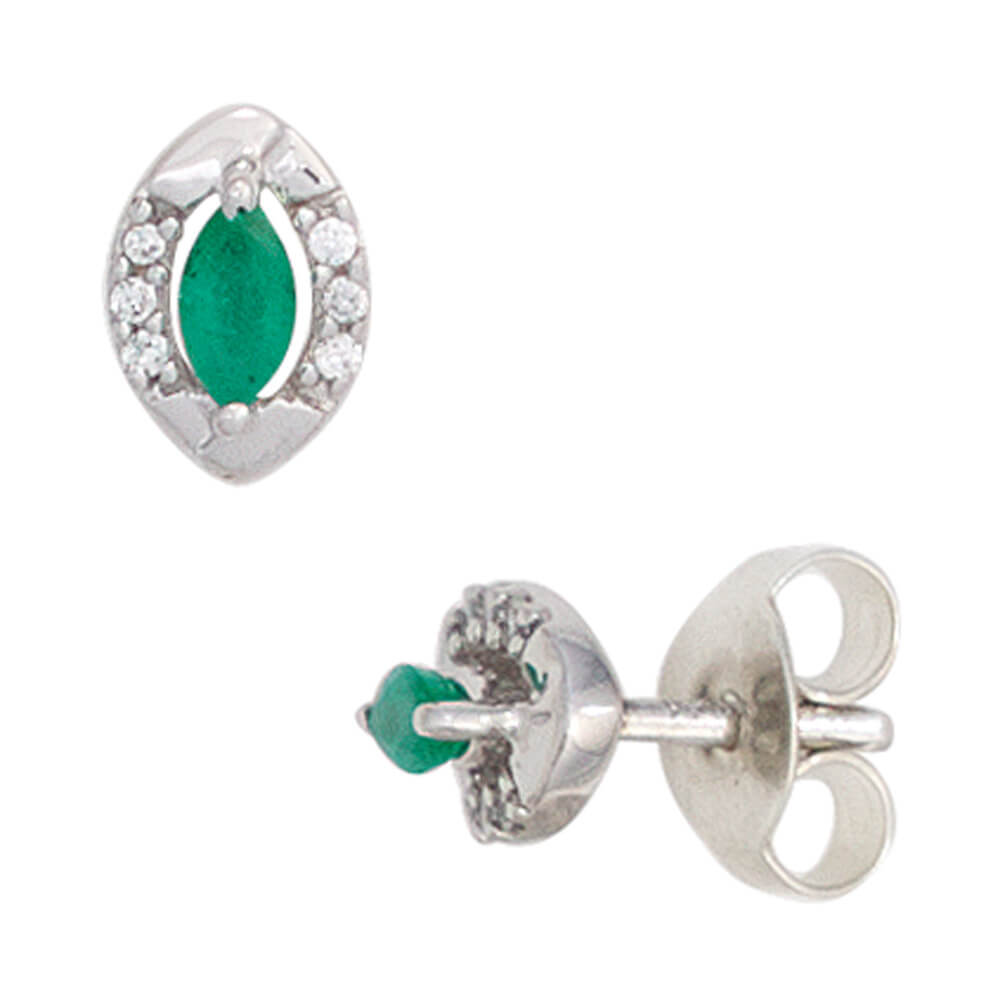 Ohrstecker oval 7,1x4,8mm aus 375 Gold Weißgold 2 grüne Smaragde & 12 Diamanten