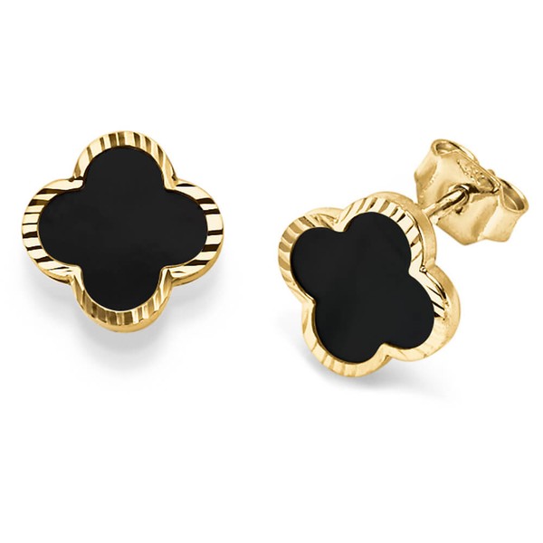 Paar Ohrstecker Kleeblatt Blumen Onyx schwarz 585 Gelbgold