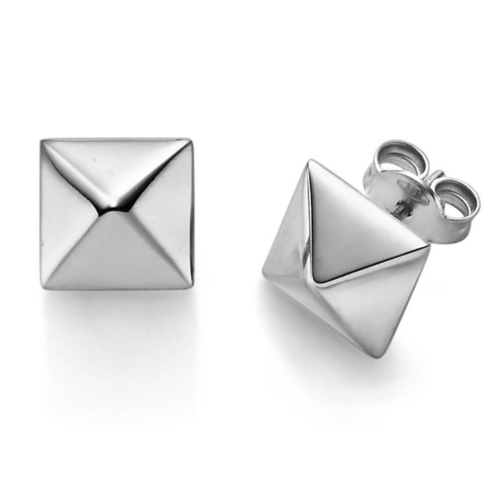 Paar Ohrstecker Pyramide 9mm aus 585 Weißgold schlicht