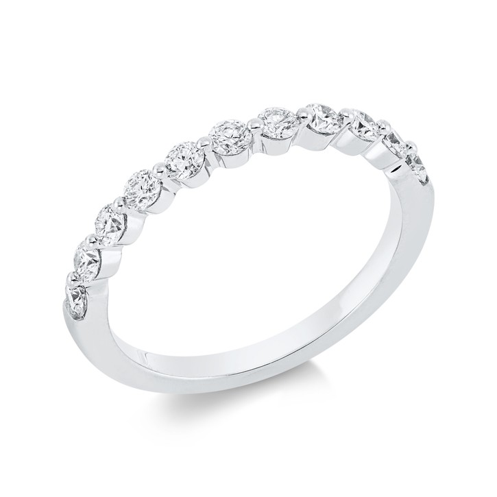Halb-Memoire Ring aus 750 Gold Weißgold 11 Brillanten 0,5ct TW-SI B:2mm