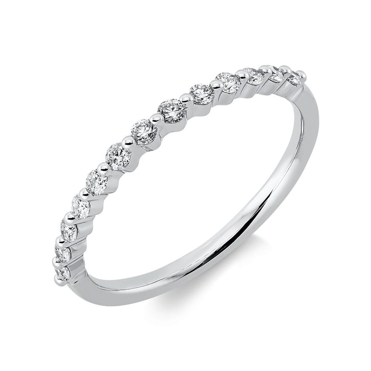 Halb-Memoire Ring aus 750 Weißgold 13 Brillanten 0,23ct TW-PI B:1,7mm