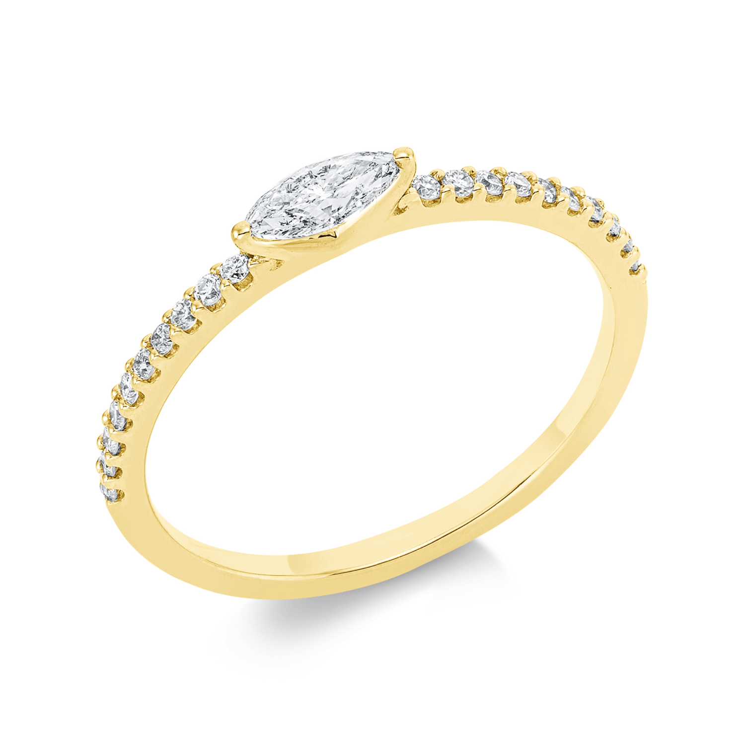 Ring aus 750 Gelbgold 21 Diamanten 0,36ct TW-SI B:2,7mm Fassung rhodiniert