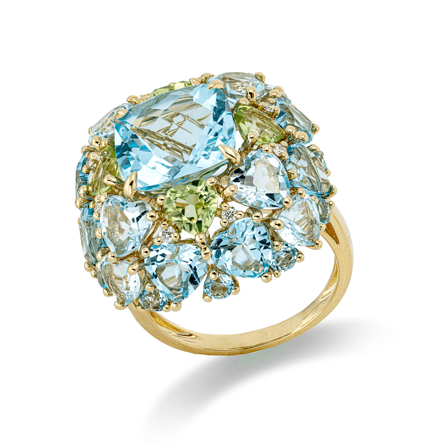 Ring aus 750 Gelbgold 33 Topase 17,4ct skyblue 8 Brillanten 0,1ct TW-SI B:21,8mm