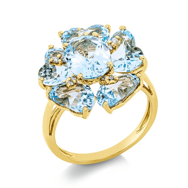 Ring aus 750 Gelbgold 6 Topase 9,7ct skyblue 10 Brillanten 0,09ct TW-SI B:18,8mm