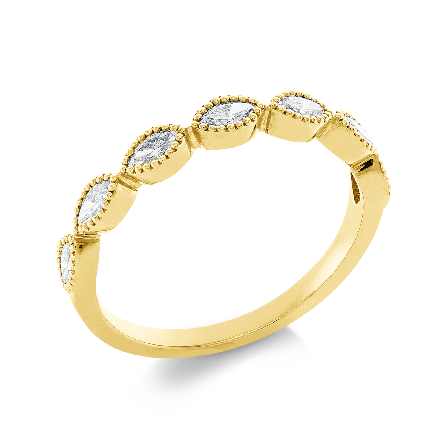 Ring aus 750 Gelbgold 7 Diamanten Navette-Schliff 0,43ct TW-VSI B:2,9mm