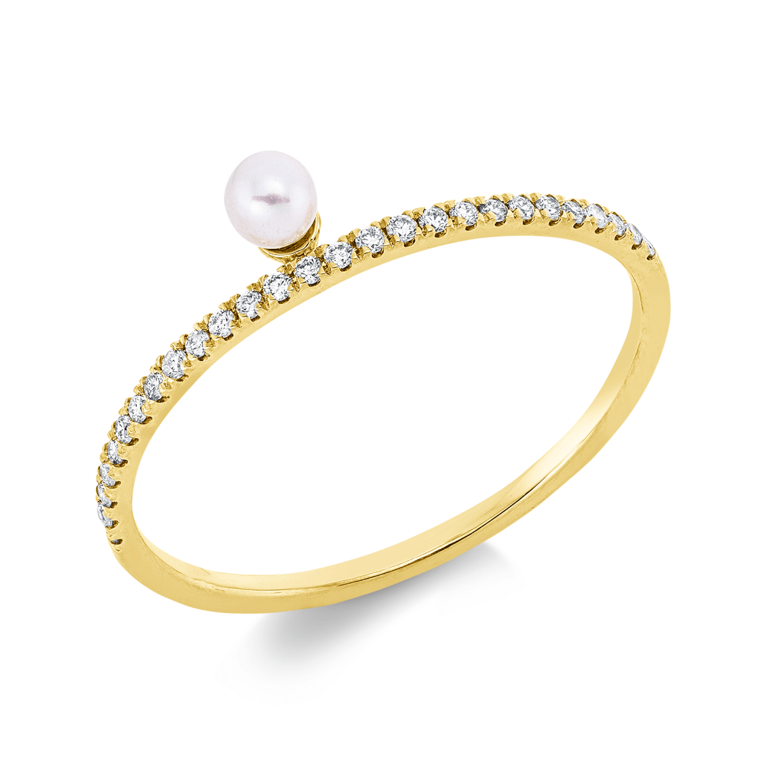 Ring aus 750 Gelbgold Süßwasser-Perle 3mm weiß 27 Brillanten 0,09ct TW-SI