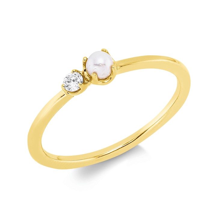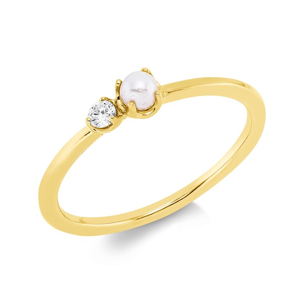 Ring aus 750 Gelbgold Süßwasser-Perle 3mm weiß Brillant 0,05ct TW-SI B:3,6mm