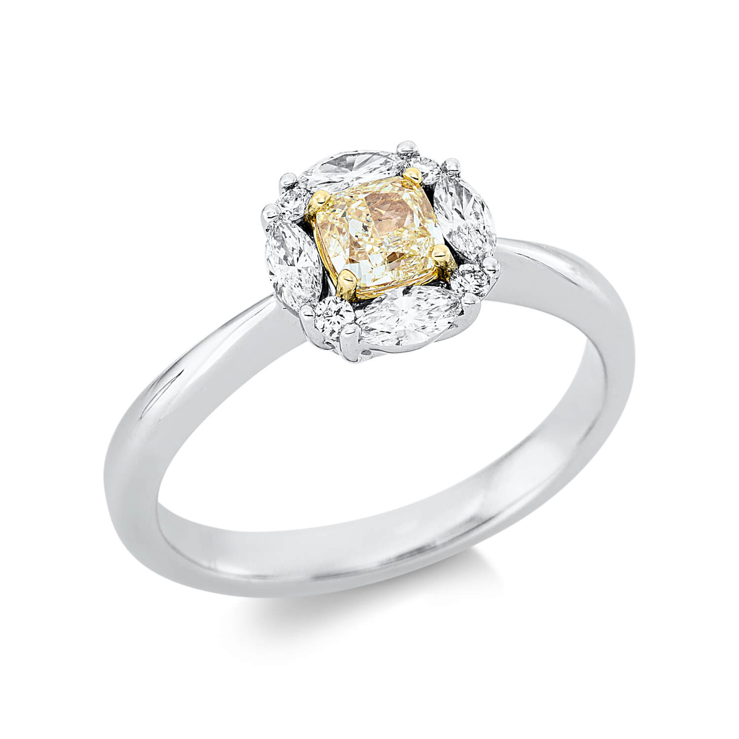 Ring aus 750 Gold gelb/weiß 9 Diamanten 0,86ct gelb B:8,3mm